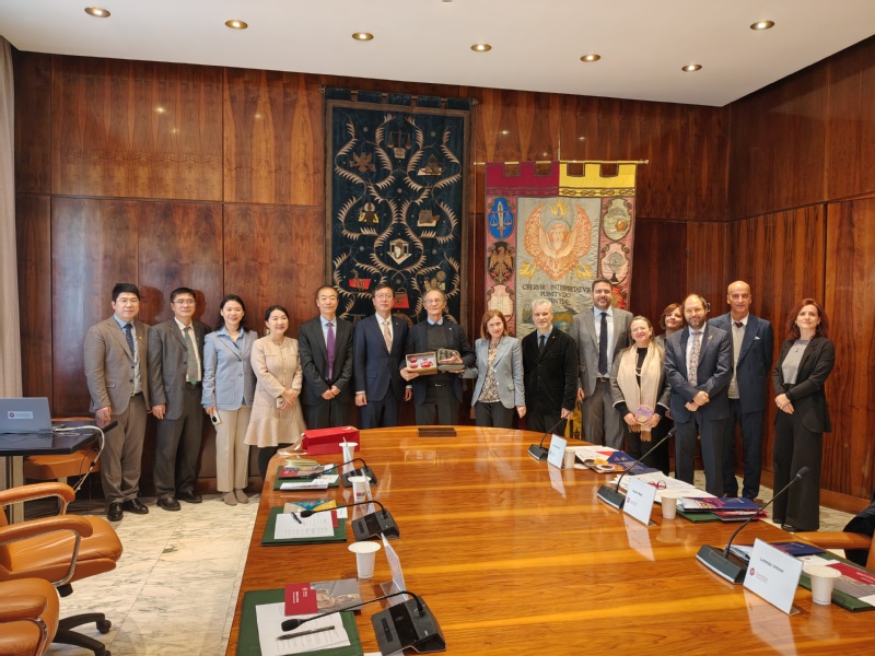 On the morning of Dec 11, Chen held talks with Giuseppe Ciccarone, vice-rector of Sapienza University of Rome. Both parties introduced their respective universities' overall situations and reached an agreement on joint student training. During the visit, Chen also met with Oliviero Diliberto, dean of the Faculty of Law at Sapienza University of Rome, for a focused exchange on the innovative development of the law discipline.