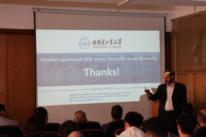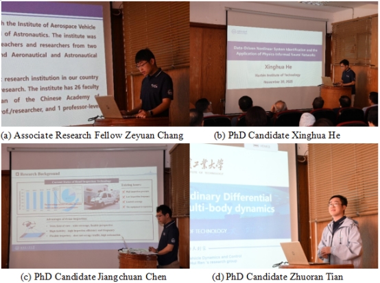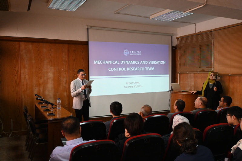 During the academic seminar, Associate Research Fellow Chang Zeyuan from the School of Astronautics delivered the opening presentation. He introduced the primary research focuses, related achievements, and the prospects and frameworks for cooperation of the Institute of Aerospace Dynamics and Control. HIT doctoral students He Xinghua and Tian Zhuoran (School of Astronautics), and Jiangchuan Chen (School of Transportation Science and Engineering) delivered reports centered on advanced topics, laying a solid theoretical foundation and practical support for subsequent joint research, while simultaneously building cross-border and cross-disciplinary academic ties to assist Chinese and Egyptian researchers in their continuous exploration of breakthroughs in the key fields of dynamics and vibration control.