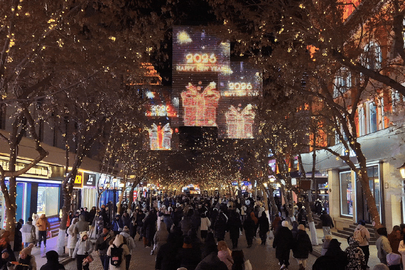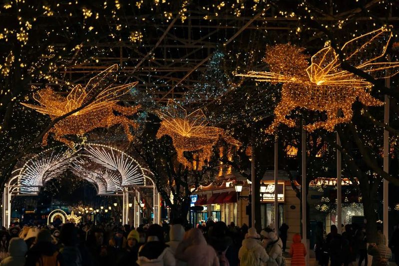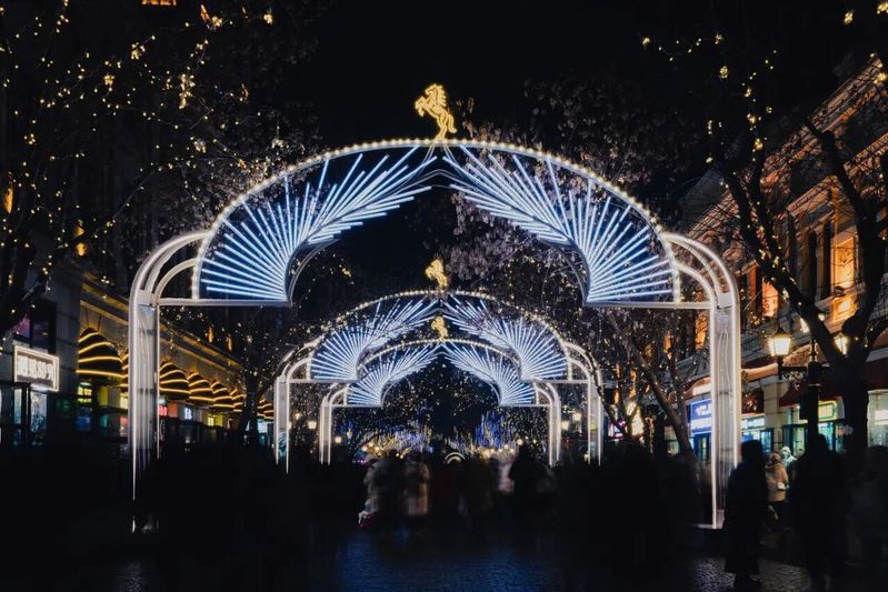 A creative lighting installation, designed and constructed by faculty and students from the School of Architecture and Design at Harbin Institute of Technology (HIT), has been installed on Pedestrian Zhongyang Street.