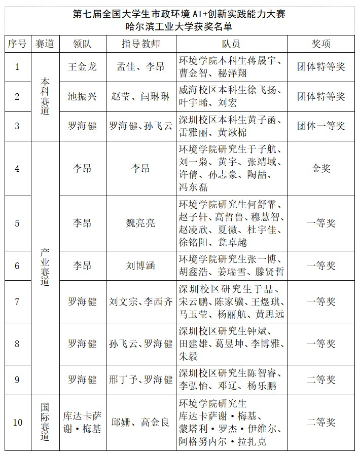 The national finals of the 7th National Competition for University Students on AI+ Innovation and Practice Skills in the Municipal Environment Field were recently held in Sanya, Hainan. Students from the Harbin Institute of Technology (HIT) won a total of one gold award, two grand prizes, five first prizes, and two second prizes.