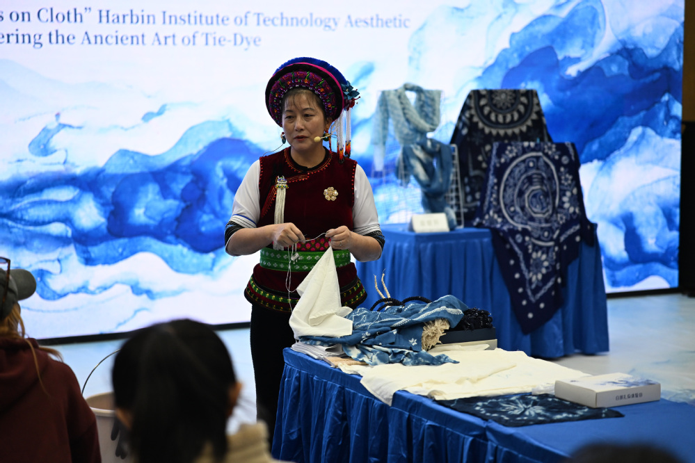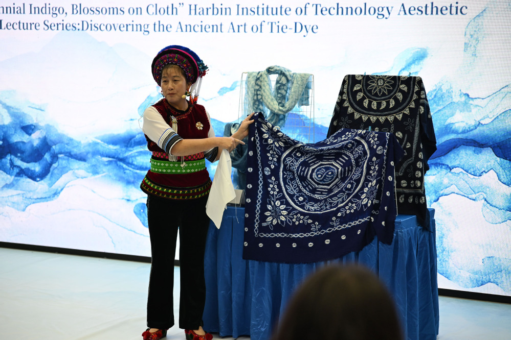 On October 21, the Erlingyi Forum at Harbin Institute of Technology (HIT) hosted Duan Yinkai, a national inheritor of the Bai ethnic tie-dye craft, and Li Rongli, an ambassador for the promotion of China's textile intangible cultural heritage. They shared their expertise in tie-dye with HIT students.