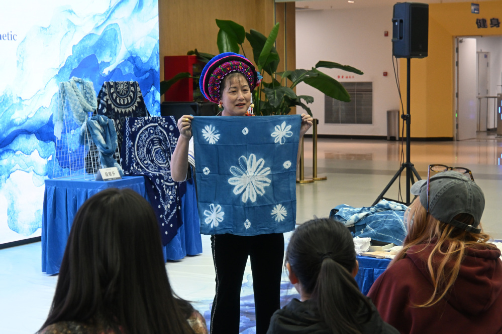The event featured a hands-on tie-dye workshop and a thematic lecture. During the workshop, Ms. Duan meticulously explained each step of the process and guided students in creating their own unique pieces, allowing them to appreciate the charm of this traditional craft.