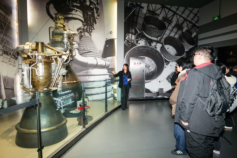 Using the museum's exhibits as teaching aids, she provided a systematic explanation of the principles behind the solid and liquid engines of the Long March series rockets, integrating textbook knowledge with real aerospace artifacts.
