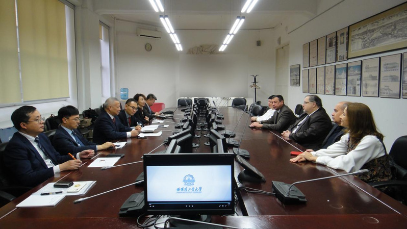 Discussions are held with representatives of Peter the Great St. Petersburg Polytechnic University. [Photo/hit.edu.cn]