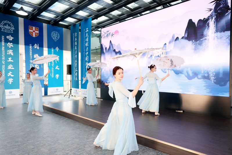 Student representatives from HIT, Oxford, and Cambridge performed a series of songs and dances, participated in various interactive games, and tried their hands at creating traditional Chinese fish-skin paintings.