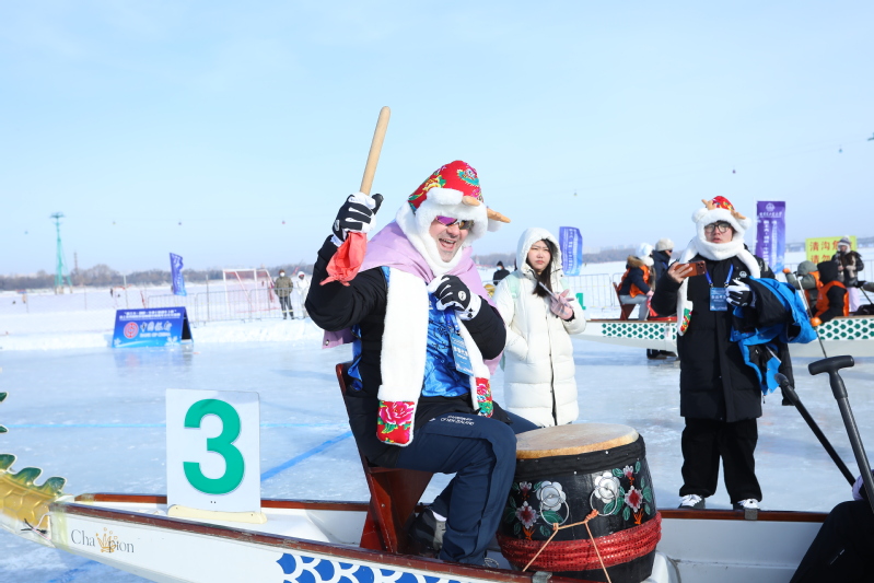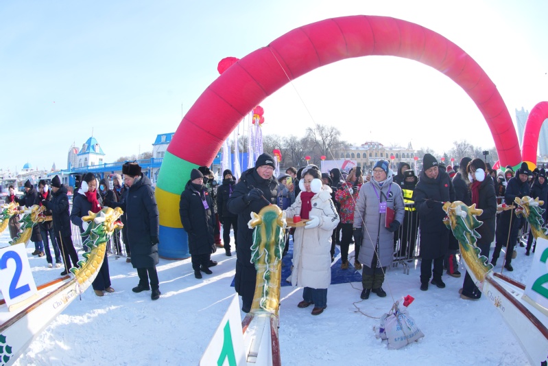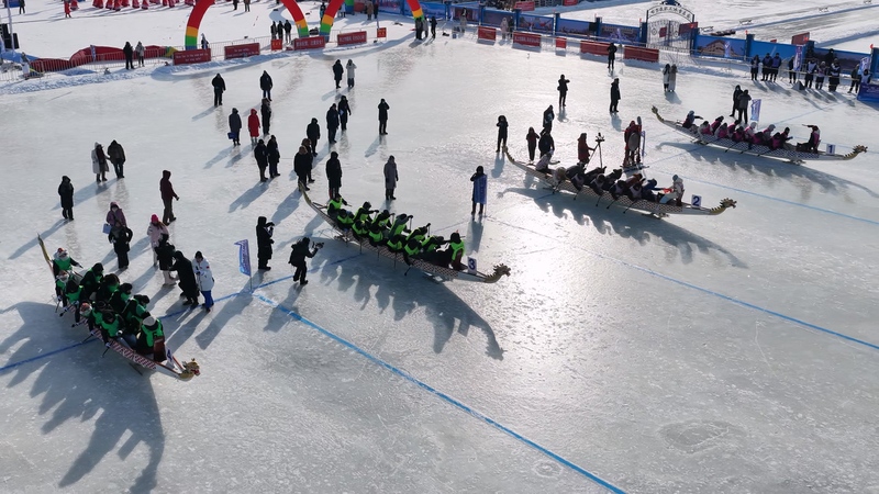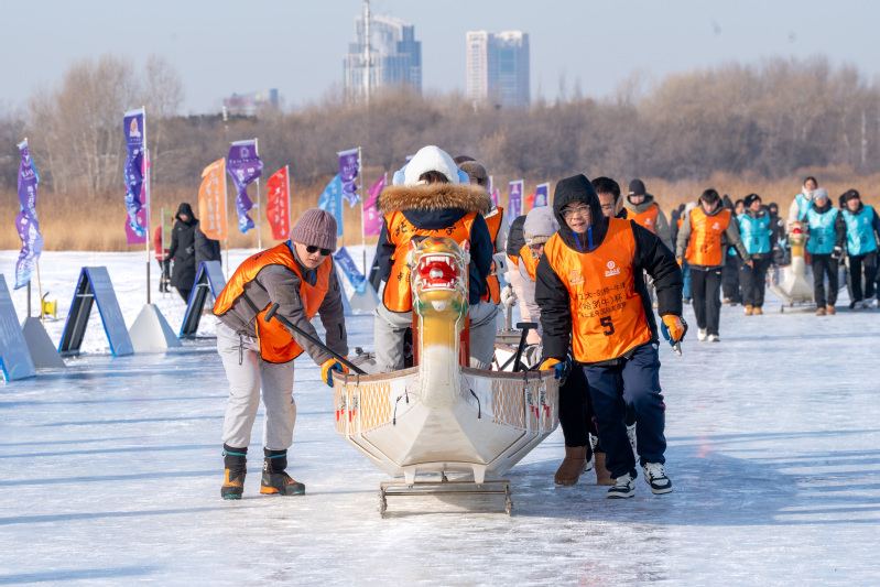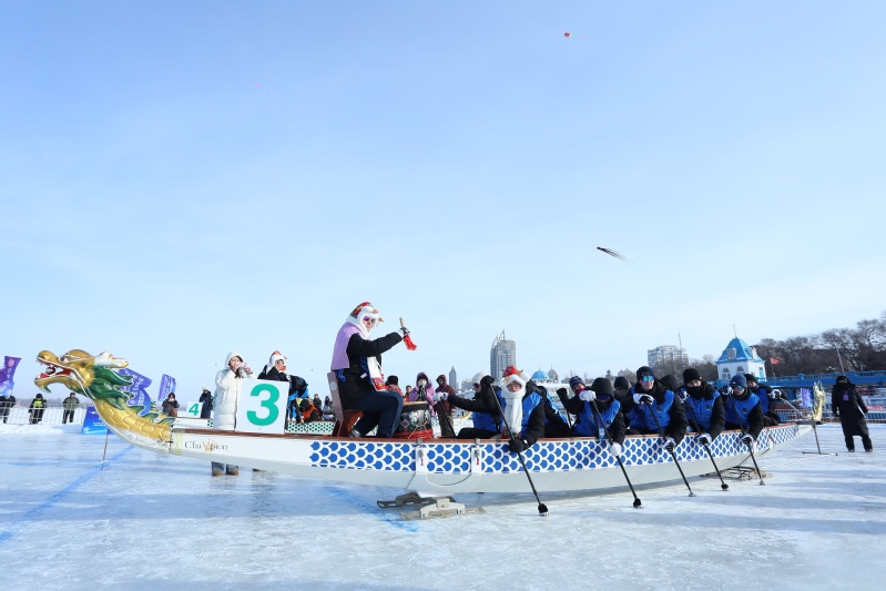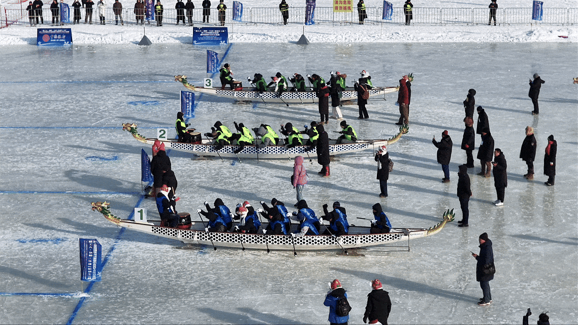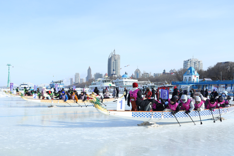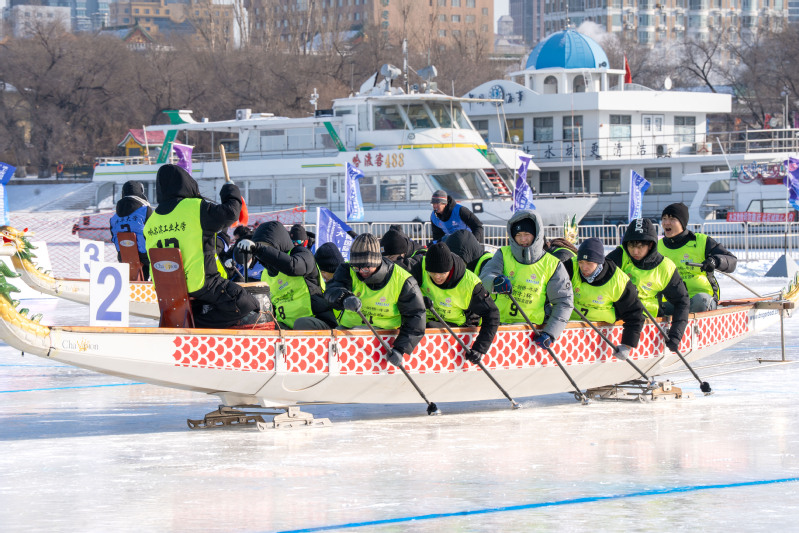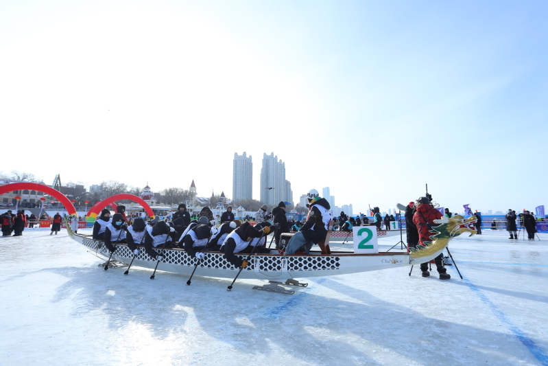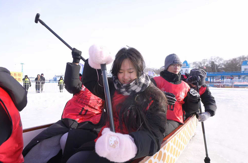 An ice dragon boat race is held. [Photo/hit.edu.cn]