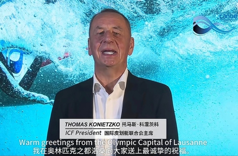 Yang Dan, director-general of the Department of International Cooperation and Exchange and Director of the Hong Kong, Macao, and Taiwan Affairs Office of the Ministry of Education, and Thomas Konietzko, president of the International Canoe Federation, delivered video speeches.