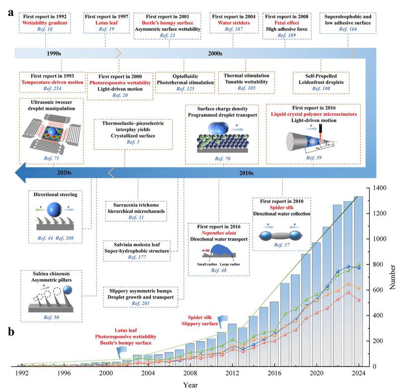 The research, published in the journal Chemical Reviews under the title Bionic Structured Milli-fluidics: A Review, elaborates on the principles of bionic structural design, the mechanisms of passive and active droplet manipulation, and the broad applications of this technology in areas such as fog collection.