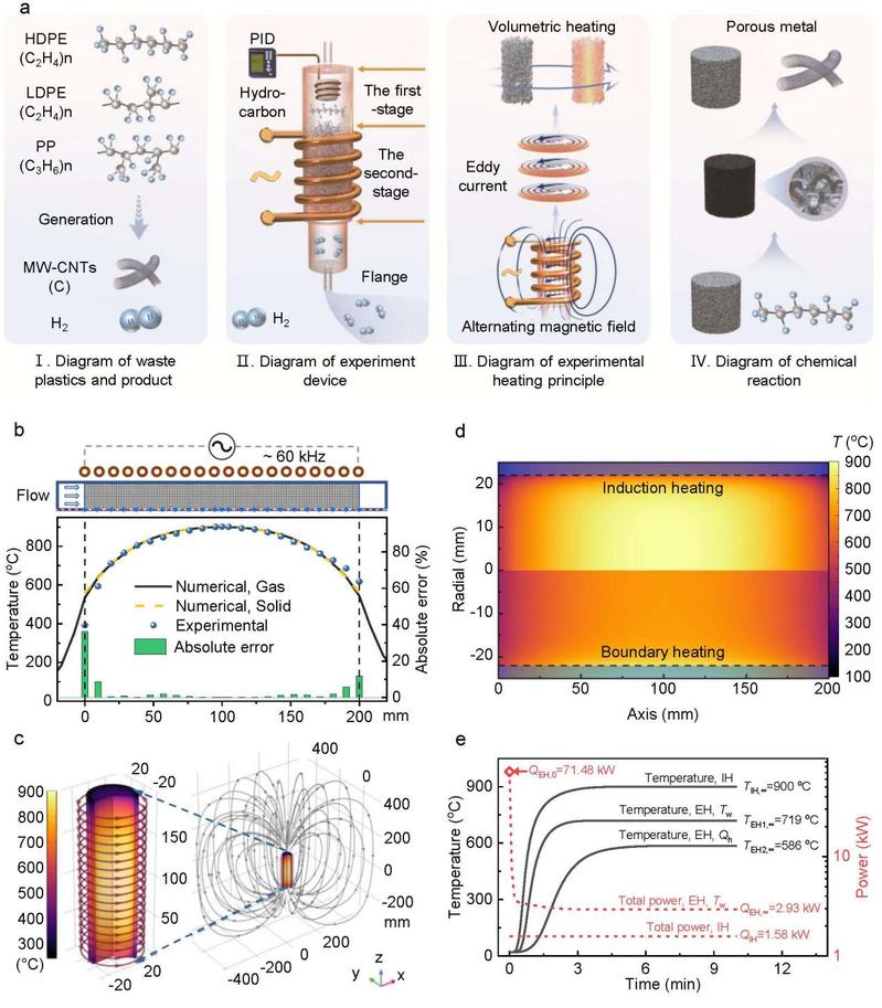 To address the common problems of low energy efficiency and uneven reactions in traditional electric heating, the team combined electromagnetic induction heating technology with porous metal catalysts, achieving precise control and enhancement of the catalytic reaction process. This significantly improved the heat and mass transfer efficiency of the reaction system, providing a novel technical pathway for the chemical recycling of waste plastics.