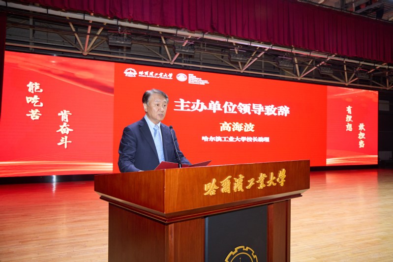 Gao Haibo delivers a speech. [Photo/hit.edu.cn]