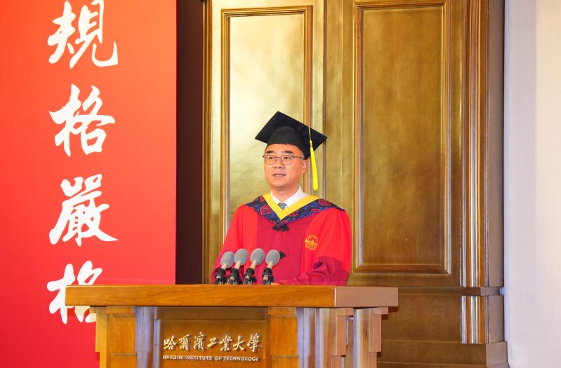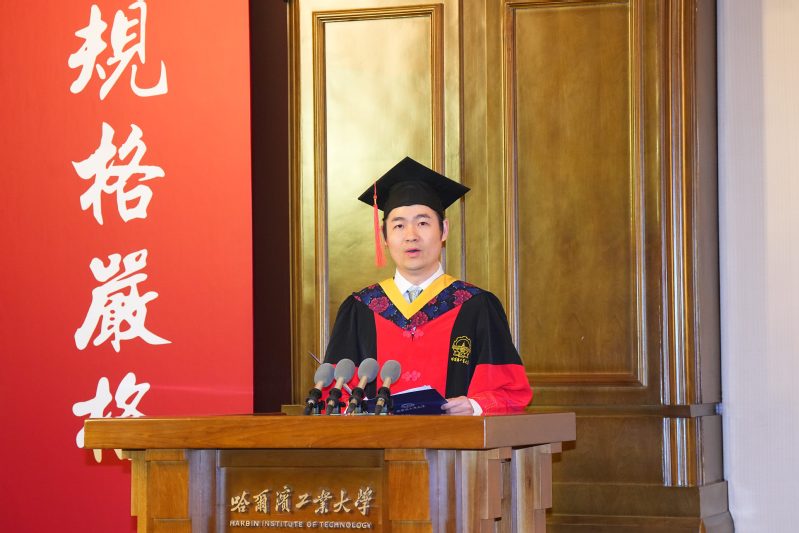 Zhao Jingdong, a professor from the School of Mechatronics Engineering, delivered a speech on behalf of the faculty, encouraging graduates to stay grounded in HIT's traditions, pursue innovation with integrity and dedication, and approach life with wisdom and composure.